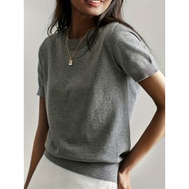 Solid Crew Neck Wool Sweater, Casual Long Sleeve Cozy Basic Sweater, Women's Clothing
