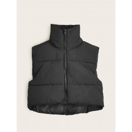 Solid Button Front Vest, Casual Sleeveless Vest With Pockets, Women's Clothing