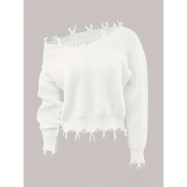 Solid Crew Neck Pullover Sweater, Casual Long Sleeve Drop Shoulder Split Sweater, Women's Clothing